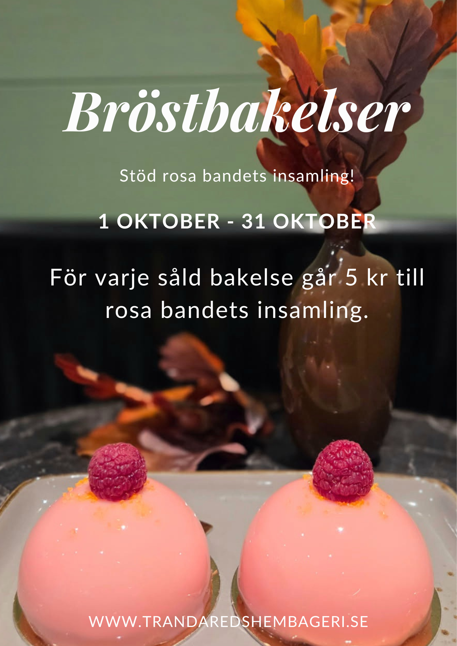 Hela oktober bakar vi bröstbakelser! Chokladsockerkaka, hallonmousse, vit chokladmousse och hallon.